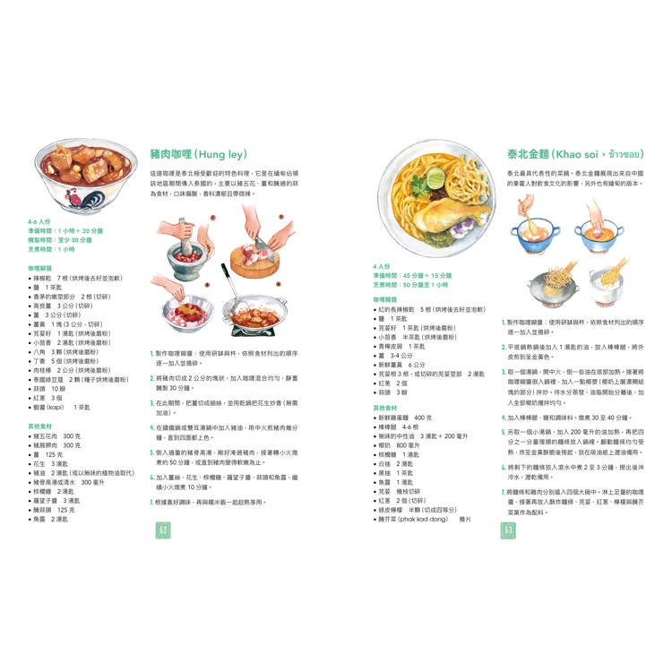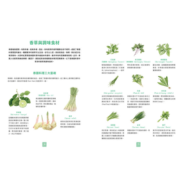 收錄多道經典食譜,如:泰式辣醬、青木瓜沙拉、冬蔭功、瑪莎曼咖哩雞、香蘭葉小蛋糕等共22道,讓你在家就能端出一桌道地泰國菜,還能說出一個個精彩的料理小故事!
