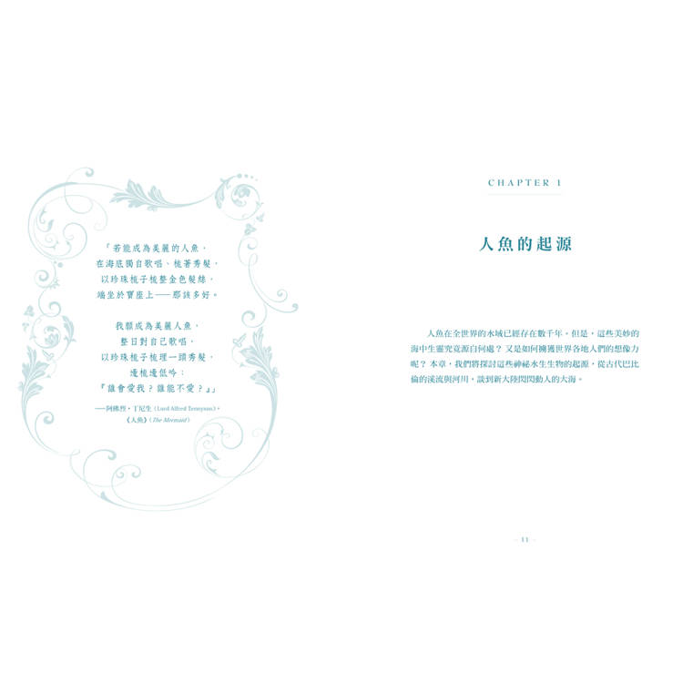神祕、帶有魔法、美得令人目眩神迷的人魚,已使人類著迷數千年。無論你走到世界上哪個角落,都能聽見關於這些行蹤不定、引人遐想的海洋生物的傳說。牠們有時和藹善良、有時帶來毀滅,但始終充滿魅力、令人無法抗拒。牠們泅泳於七大洋間,也會在河川、湖泊和溪流玩水,甚至在噴泉和水井也能看見牠們的身影。而這些充滿魔力的生物,在現今社會發揮的影響力,可能比你所想的還要巨大。