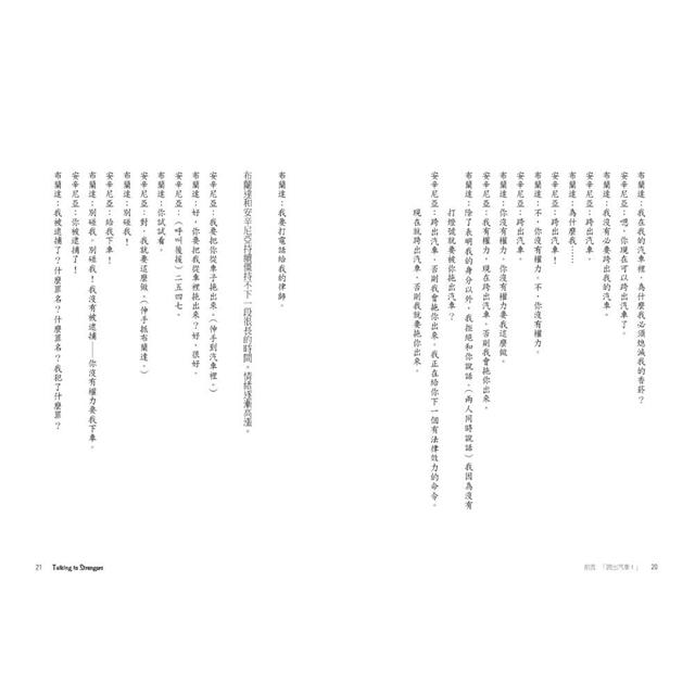 作者在書中提到,「我們應接受我們解讀陌生人的能力有其極限。」考量到書中提到的每一個角色,未必都是全然的陌生人,有些人彼此之間是同事或朋友,我想進一步延伸成,我們都應該體認到,我們「解讀人的能力有其極限」。