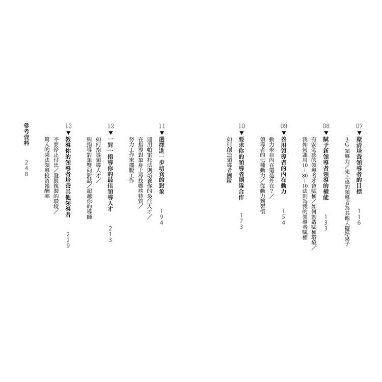 2. 專屬於領導者的自我成長書:不只是教你成為好領袖,更教你如何教出優秀的領導人才,發揮領導力的乘法效應,培養屬於你的領導團隊,讓組織在競爭中迅速勝出。
