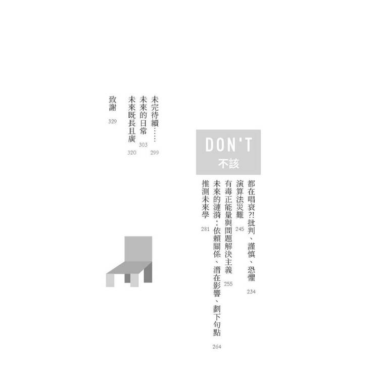 ◎關於未來,我們或許都想錯了?!一本教你如何思考未來(還有避免落入未來思維陷阱)的寶貴指南,暢談我們如何看待未來,而這樣的想像又是形塑於怎樣的資訊、文化與經驗。