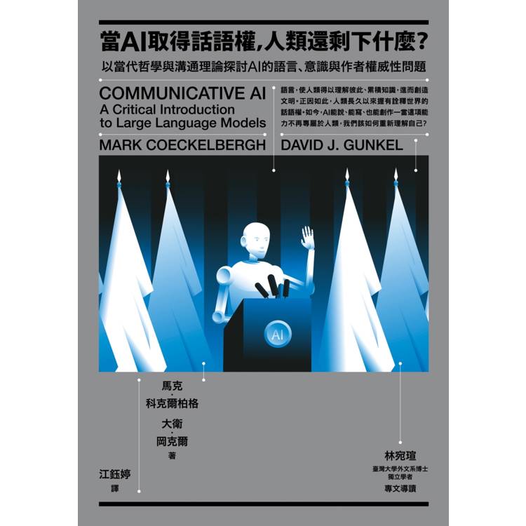 作者馬克.科克爾柏格與大衛.岡克爾專攻機械哲學與技術哲學,多年鑽研機器、哲學與倫理相關的議題,本書不僅介紹LLM技術的運作機制,循序漸進探索AI與語言、意識等議題,甚至觸及AI所造成的社會與法律問題,科克爾柏格與岡克爾嘗試以當代哲學、語言學、思想實驗與溝通理論回應這些嶄新的議題,使我們重新思考AI對於語言、意識與作者權威性等所造成的衝擊。