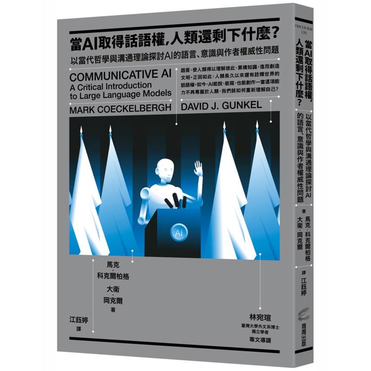 上述議題自 ChatGPT 問世以來,便反覆出現在各種討論之中。然而,本書的關注焦點並不在於盤點 AI 的技術風險或提出對應策略,而是試圖回到更根本的問題。作者從「機器會說話」這一現象切入,指出當非人類系統能夠流暢地生成語言時,將如何動搖我們對語言主體與作者身分等既有概念的理解。由此出發,本書進一步追問:機器是否真的理解語言?抑或只是看似在與人類溝通?它們能否參與意義的建構?這類會說話的機器,又將如何重塑智慧、語言與書寫的定義?本書提醒我們,打造對話式 AI 從來不只是科技問題,而是自始就涉及哲學問題,並踩在西方形上學的敏感神經上,從人們對圖靈測試的各種解讀即可見一斑。