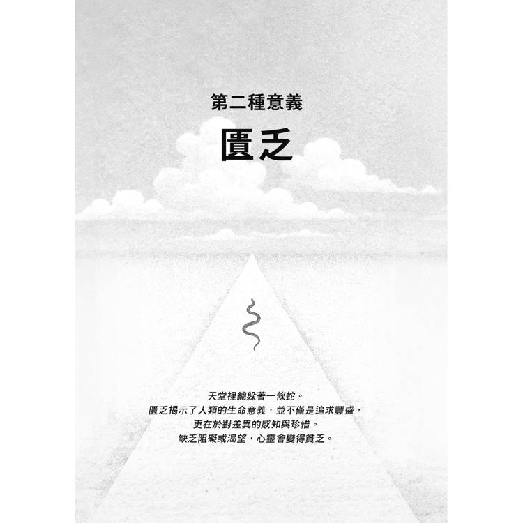 天堂裡總躲著一條蛇。匱乏揭示了人類的生命意義,並不僅是追求豐盛,更在於對差異的感知與珍惜。缺乏阻礙或渴望,心靈會變得貧乏。