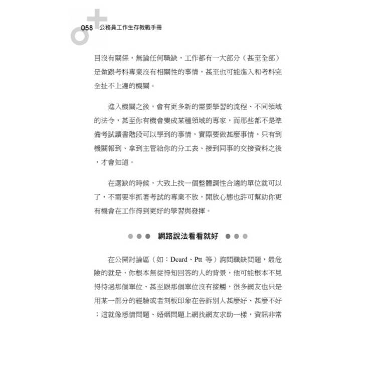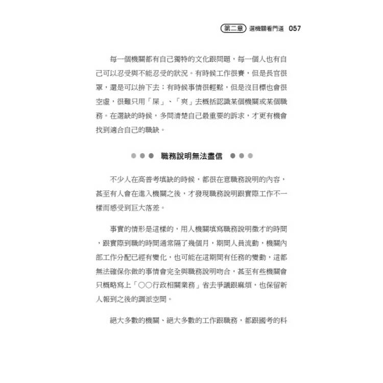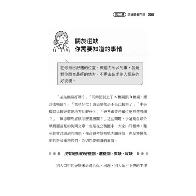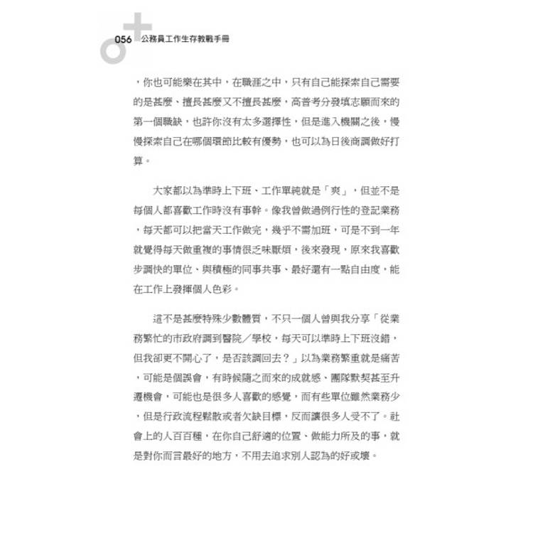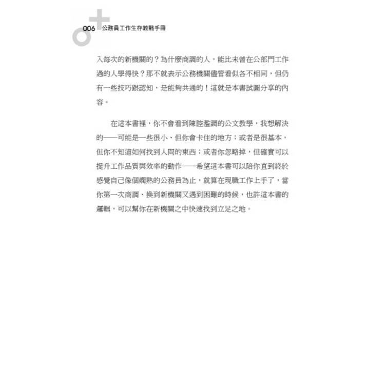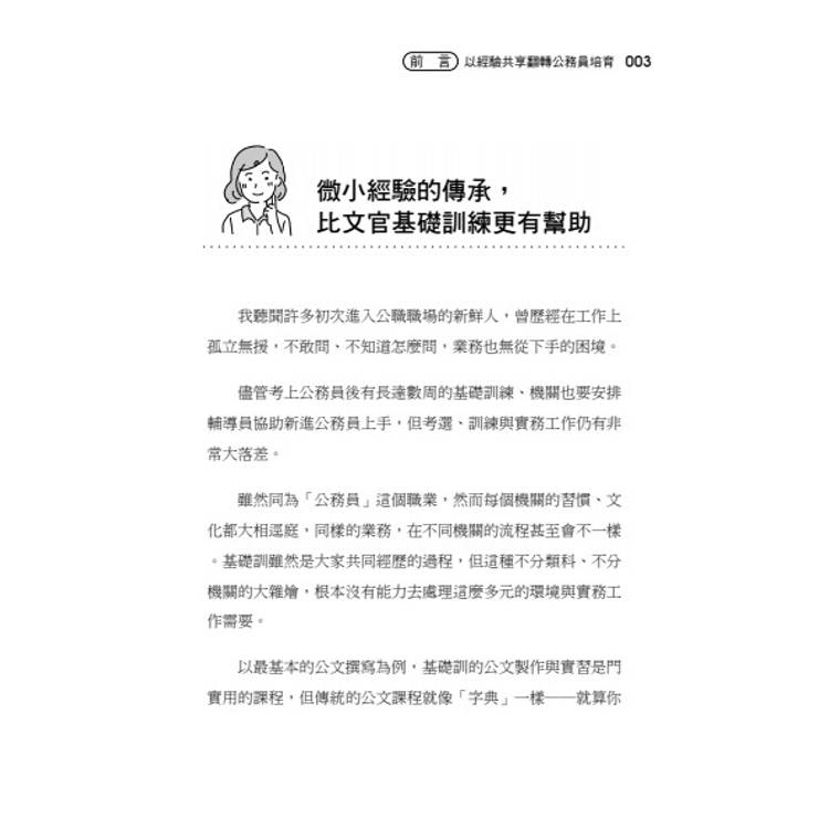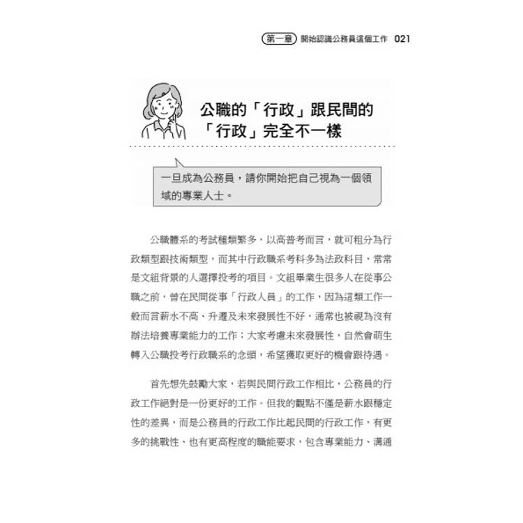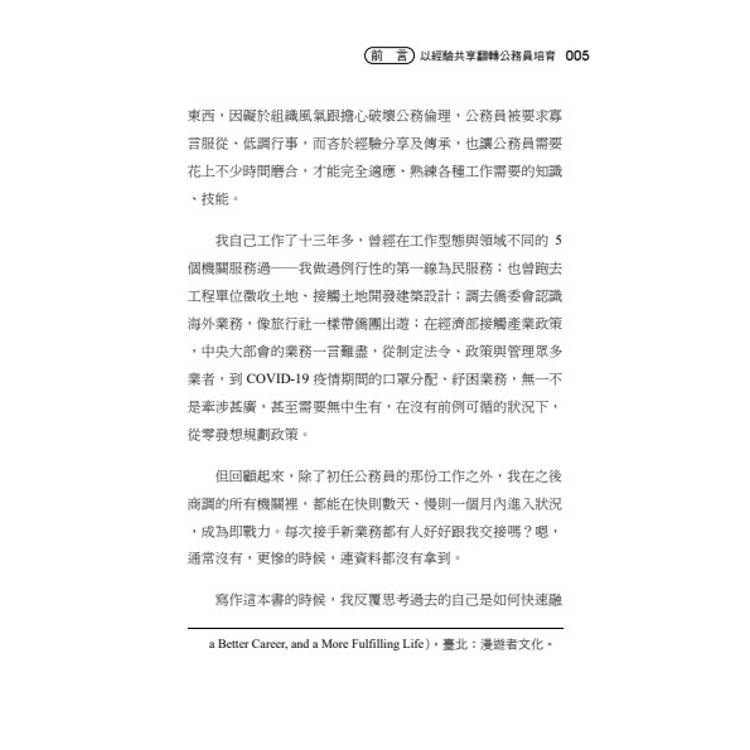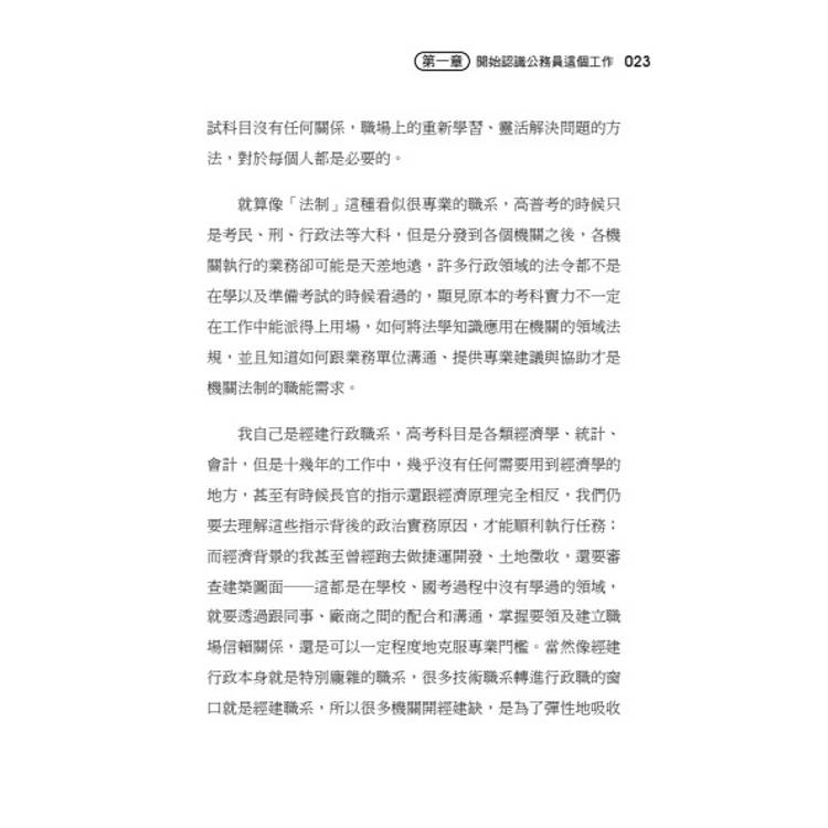 不必害怕未知,這本書就像前輩的提醒,幫你描繪出公職生活的輪廓,給你勇氣去想像、去嘗試。