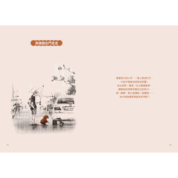 每篇結合插畫與文字,不需連續閱讀,也能隨手翻開、立即沉浸其中,適合忙碌的讀者,和作者一起在時間的縫隙中找到療癒,並能理解育兒的辛苦其實可以用幽默與溫暖化解,讓人笑中帶淚、看見生活中微小確切的幸福。