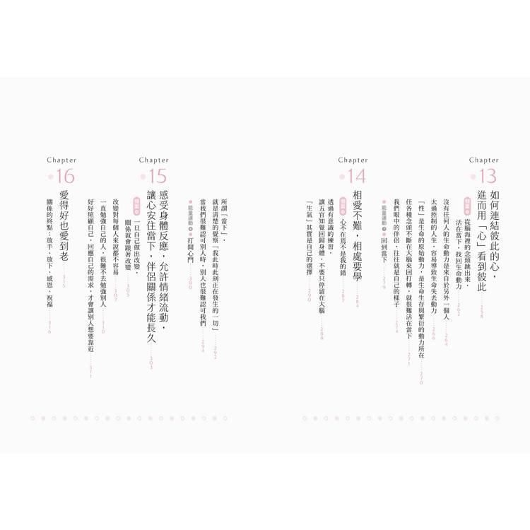本書是心療法運用於親密關係的集大成之作。從測驗分析雙方的情緒類型,活用心念醫學對症緩解,進一步藉由案例反思自身,並按照圖解及影片實際操作,真正學習如何化解衝突和有效溝通。