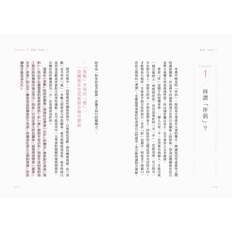 每對伴侶都有各自的關係課題,了解自己與伴侶的特質,檢視被忽略或壓抑的內在情緒,解開糾結的心念,才有機會改善關係,找到真正能夠攜手共度人生的「伴」,進而擁有真摯的情感連結。