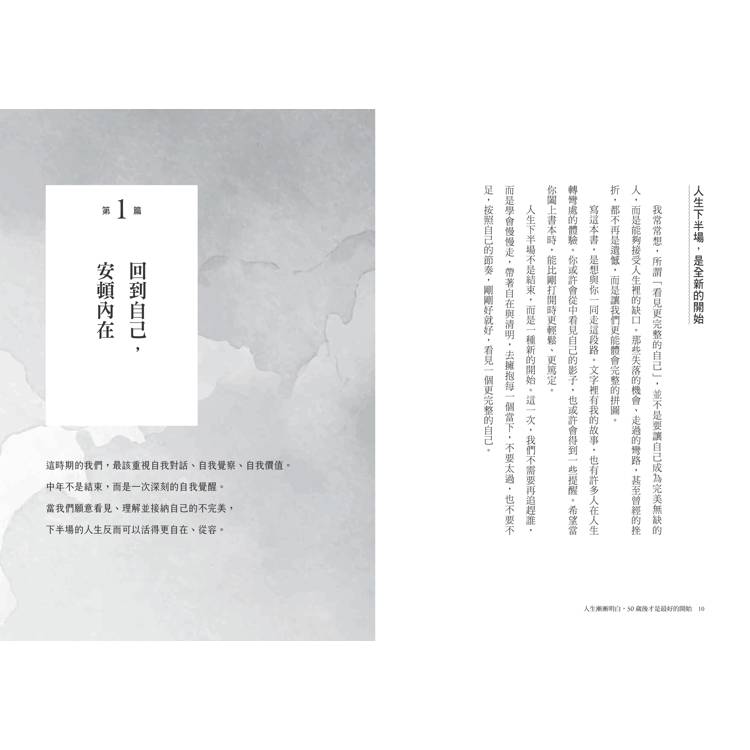 許多人以為,中年是危機。其實,它更像是一面鏡子,讓我們照見那些被忽略已久的角落。也許你會突然意識到,自己不再需要為了迎合誰而勉強,不必再用滿檔的行程來證明自己的價值。相反的,人生下半場給了我們一個機會,重新安排生活的優先順序,什麼是真正想留下的?什麼是可以放下的?