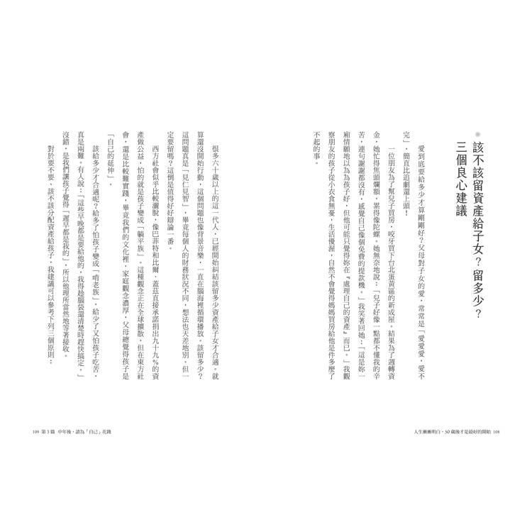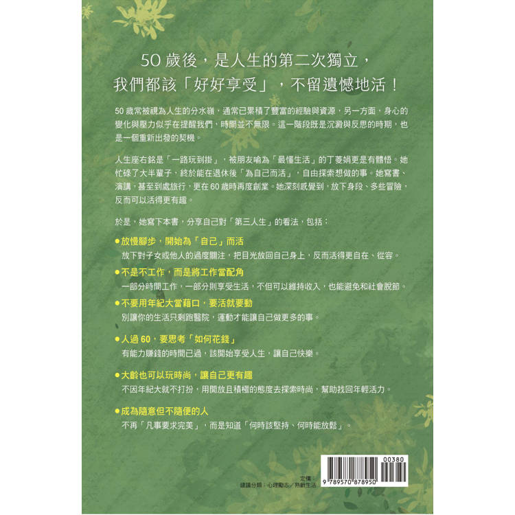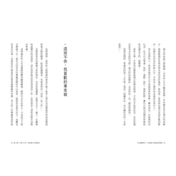 於是,她寫下本書,分享自己對「第三人生」的看法,包括: