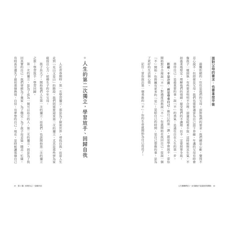 在前半場,我們大多按照社會的劇本走:念書、工作、結婚、生子,拚命在不同的角色中完成「應該做的事」。我們曾經很努力去成為一個稱職的父母,一個值得信任的伴侶,一個表現優異的職場人。可是走到某個年紀會突然意識到,這些角色並不能完全代表自己。那個一直努力「扮演好」的人,內心深處還有一個更真實、更渴望呼吸的自己。