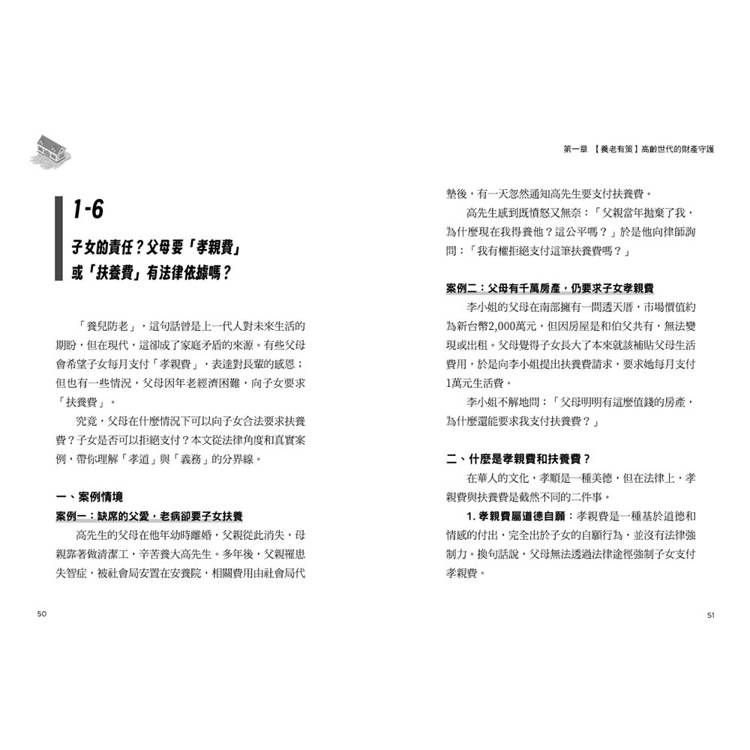從以房養老、留房當包租公,到贈與後悔、不孝條款、繼承債務、再婚財產保護,每一項重大決定背後,都牽涉複雜的法律效果與家庭關係。本書以案例、流程圖與檢查清單,協助讀者快速掌握重點,使規畫變得清晰、可行、可落地。