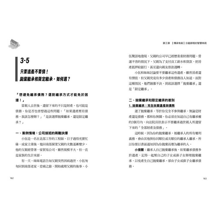 提供應繼分圖、金融清單範本、遺囑撰寫步驟、拋棄繼承流程等圖解與模板,讓讀者能直接上手,完成完整的財產管理規劃。