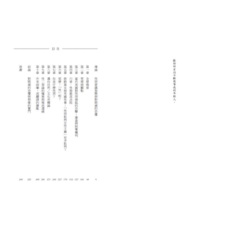 至少在美國,性別不再只是日常生活中官方文件上的框框,也不再是學術象牙塔中的晦澀學門之一。恰恰相反,「性別」將諸多現代的恐懼集結在一起,並升溫眾人對其的恐懼,因而成了極具毀滅性力量的幻象。當然,當今世界有更多完全有正當理由害怕的事物:氣候災難、迫遷、在戰爭中岌岌可危甚至逝去的生命;種種新自由主義經濟正剝奪眾人維生與發展所需的基本社會福利;系統性種族主義透過快慢不一的暴力奪走許多人的生命;女性、酷兒、跨性別者(尤其是黑人或棕人)被謀殺的比例高得驚人。