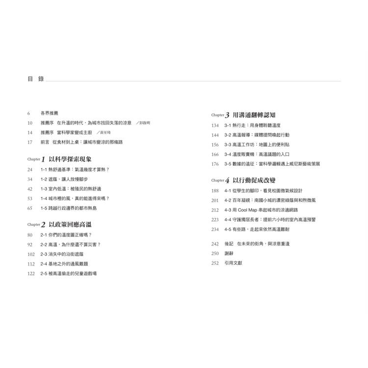 書中搭配30張插畫與10支紀實影片,邀請您一同參與這場從忍受轉向選擇、從了解轉向行動的「涼適革命」。