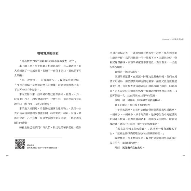 此外,書中也搭配八支影片,讓你更貼近這段過程。紀錄片導演黃至琦花了兩年時間,貼身記錄我與研究室成員的行動現場,捕捉那些嘗試如何發生、理想如何卡關、衝突如何化解,以及改變如何微小卻堅定地緩步推進。