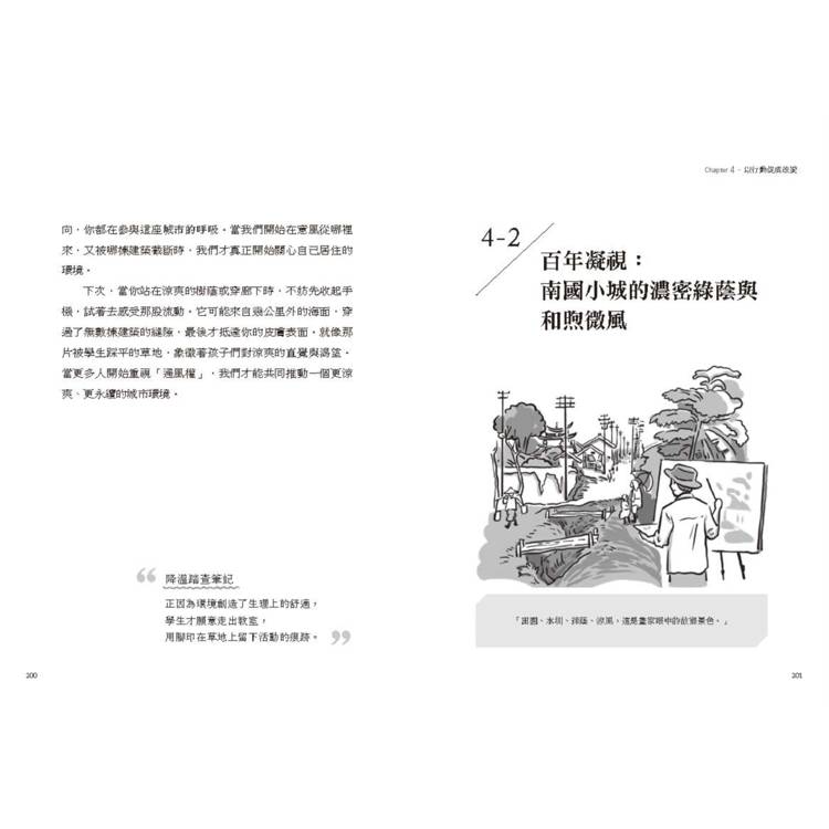 這本書除了文字,也透過插畫,協助你理解那些不容易只靠語言說清楚的現象:風如何流動,熱怎麼累積,遮蔭又如何改變體感。這些圖像不是裝飾,而是另一種理解的方式。