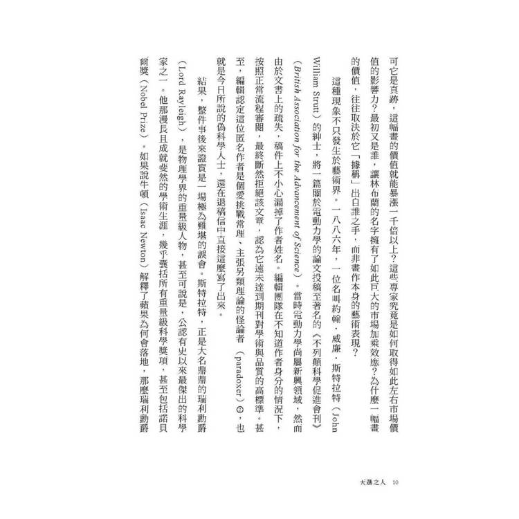 同樣地,我們做選擇時,總會不自覺地看重那些早已獲得「加冕」的人與機構,並在無形中強化他們的社會地位。在很大程度上,我們對某件事物「好不好」的評價,我們談論它的頻率、轉發它的內容、讚賞它的程度、對它的渴望、注意力與資源的分配,往往不是基於它本身的特質或價值,而是取決於,與它最密切相關的人或機構擁有多少聲望。在日復一日、習以為常的生活節奏中,我們一次又一次地依據創作者「是誰」、我們「如何看待那個人」,而不是作品本身的優劣,來賦予事物價值。這種思考模式早已深植於認知中,成了我們判斷的預設模式,卻往往未被察覺。多數時候,我們甚至沒有意識到:根據與某件事物相關的人或機構的聲望來評價它,與根據它本身的特質做出判斷,兩者其實有著本質上的不同。這種潛藏在日常中的判斷捷徑,普遍得令人驚訝,我還給它取了個名字:「名望價值化」(The Big Shift)。