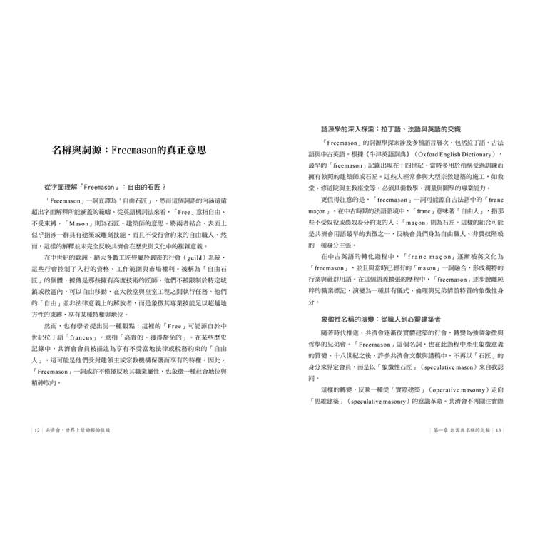 從詞源學到文化詮釋,「Freemason」的名稱背後蘊含豐富的歷史脈絡與象徵轉變。它起源於一群具有技術與移動自由的中世紀工匠,逐漸演化為一個強調道德建設與精神自由的國際兄弟會。這個詞語不僅是共濟會歷史的入口,更是一面映照西方現代性演化的語言鏡子。