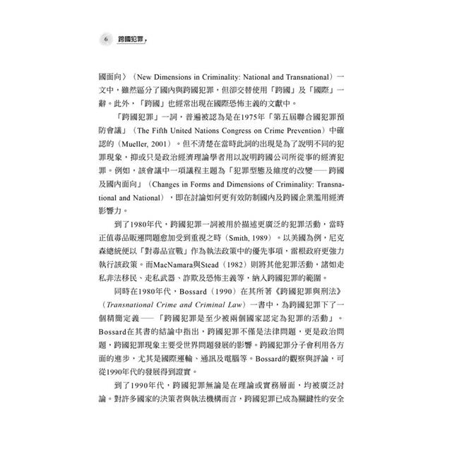 本書的撰寫,嘗試結合歐美國家的經驗、學理論述及本土的犯罪現象。從巨觀面來看,內容架構分為三大篇,第一篇為跨國犯罪類型,第二篇為國際執法合作,第三篇為跨國犯罪防制。從微觀面來看,第一篇係從跨國犯罪的基本概念出發,繼而探討人口販運、毒品販運、洗錢、國際恐怖主義、電腦犯罪、詐欺等我國當前所關注的跨國犯罪類型。為使讀者能夠對跨國犯罪有更完整的瞭解,本書第二篇接續討論全球性與區域性執法合作組織、駐外執法聯絡官等合作機制。第三篇則探討跨國組織犯罪、情資交換、國際司法互助、國際執法合作影響因素等與防制對策有關的議題。