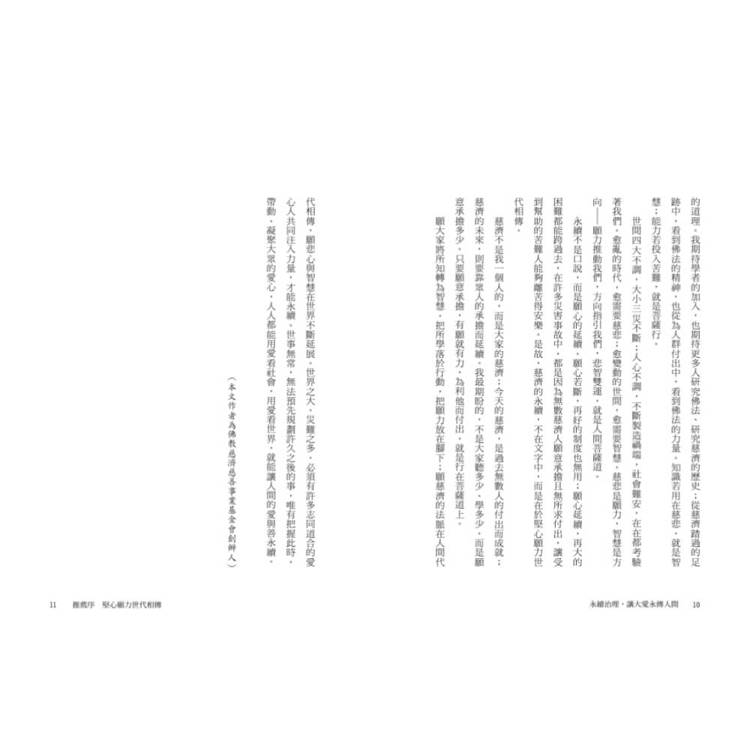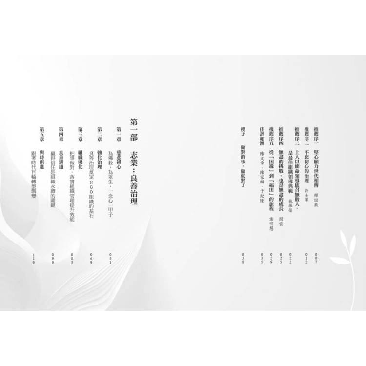 如果要讓慈濟的精神永續,繼續傳承下去,就要有一個組織治理的機制,要靠制度才能讓組織永續發展。……在此向各位讀者推薦本書,相信您定能從中獲得啟發。