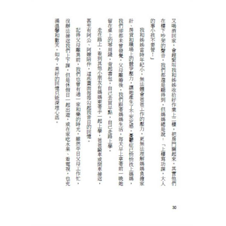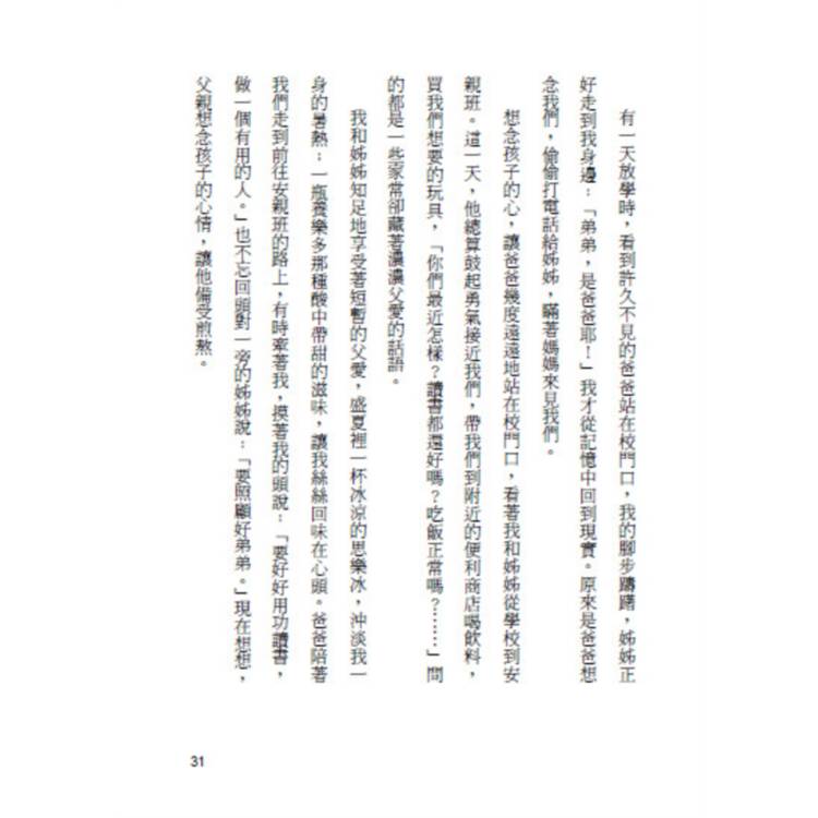 幸好臺灣當時公立學校學費不算貴,加上當時的聯考程序簡單不花錢,憑自身努力念書我們真的翻身了。可是子欲養而親不待,父親走時我剛就業,很遺憾來不及請父親上館子吃一頓飯!儘管如此,我很慶幸,在幼年期間一直有個完整的家,和書中主角們相較,仍是幸福多了!