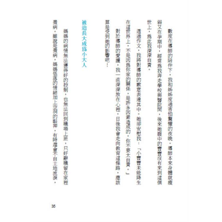 在成長求學及人生過程中感受到生命的溫暖,