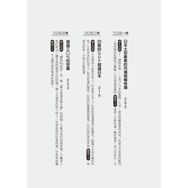 同時,不得不提到公司為了追求利潤與效率,目前多數的上班族日常就是被永無止境的工作壓得喘不過氣來,其中還包括公司必須去思考未來和尋求戰略。如今幾乎每份工作都被公司期待需要具備企畫能力。因此,想企畫出吸引人、能賺錢的方案,你也須掌握最基礎的未來趨勢和獲利商機。
