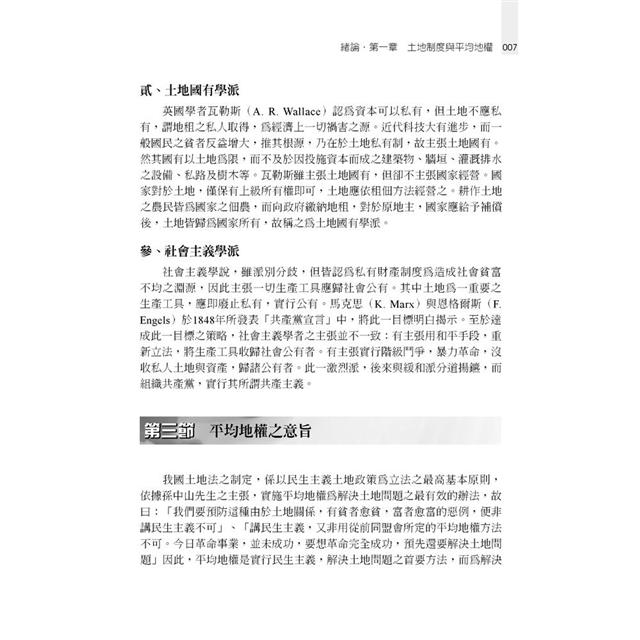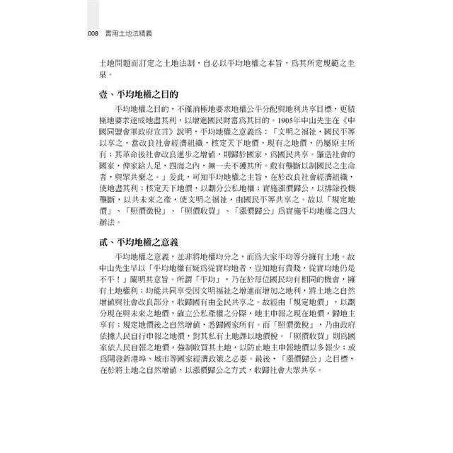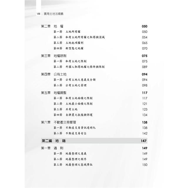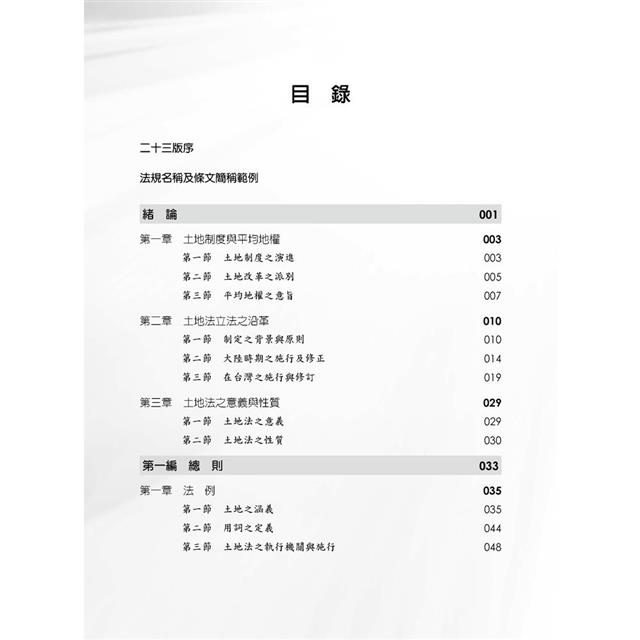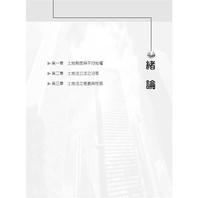 本書之編纂,從來即在土地法典架構上,以土地法之編章為經,相關特別法規為緯,為章節安排之依循,冀祈讀者能體系化地掌握土地法規精髓。惟原土地法典無並不動產交易安全編章,為配合平均地權條例之增修,爰於第一編總則增列第六章不動產交易管理。除使讀者理解主管機關為維護市場交易秩序,保障消費者權益的立法意旨之外,亦可配合國家考試相關類科所增設之考試範疇,提供應試者需求。此外,為配合土地利用法規之頒布施行,本書第三編編排方式,自上一版即不再拘泥於原土地法第三編土地使用編之框架,改以各特別法為主,分別羅列論述,本次版本仍維持之。本次之修訂,仍恐有不察之處,謬誤難免,尚祁方家不吝賜正。