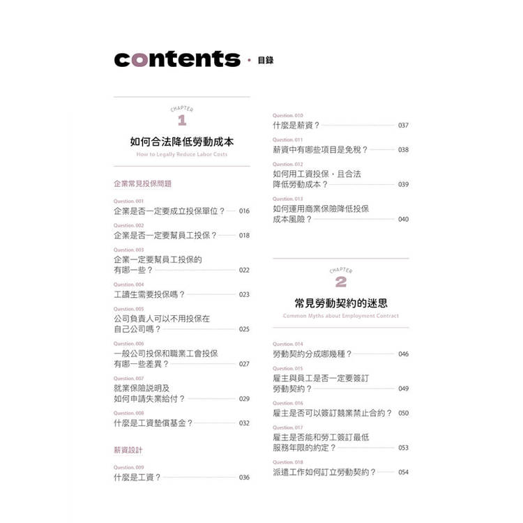 不管你是人資主管需要處理員工合約、創業新手需要懂得管理公司風險,還是企管顧問幫助客戶規避法律風險,這都是一本隨身寶典,讓你隨時應對各種勞資挑戰,管理不NG!