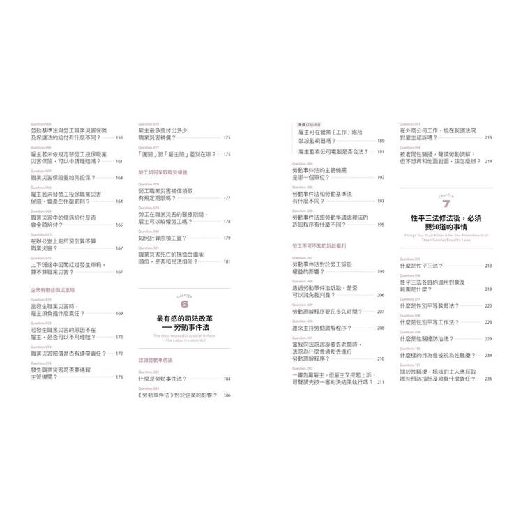 《勞基法》中資遣、加班費、退休金如何計算;《勞動事件法》下發生勞資糾紛如何合法處理,以及《性平法》中的性騷擾防治、性別平等工作法、性別平等教育法三大法規,打好法規基礎,讓你在面對各式勞資問題,都能輕鬆找到最佳解決方案!