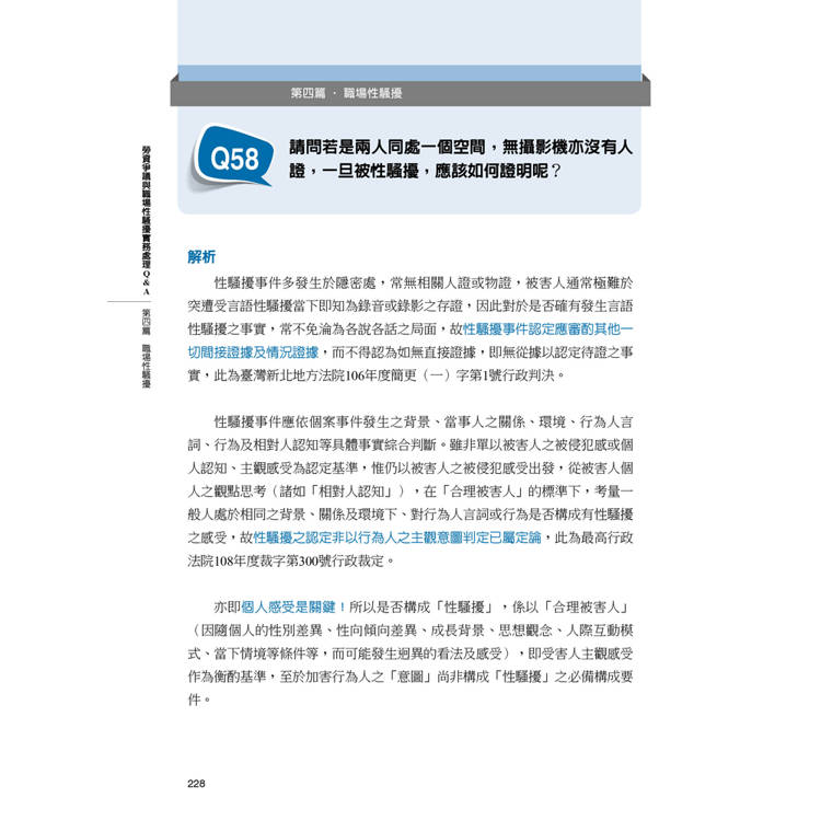Q58.請問若是兩人同處一個空間,無攝影機亦沒有人證,一旦被性騷擾,應該如何證明呢?