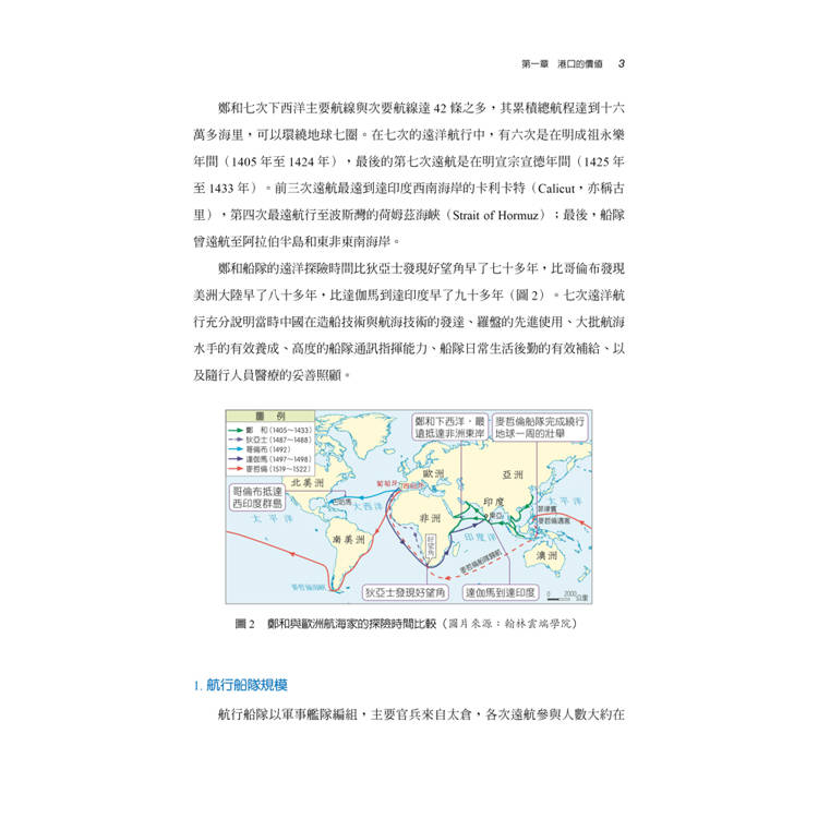 1405年鄭和第一次下西洋,率領龐大的船隊航向更遠的海洋,開啟了人類大規模的遠洋探索。十五世紀末,西歐國家展開了大航海時代,繞過好望角,發現新航路,登上亞洲次大陸;哥倫布發現美洲,開始探索另一個新世界,走上全球物種大交換的時代。