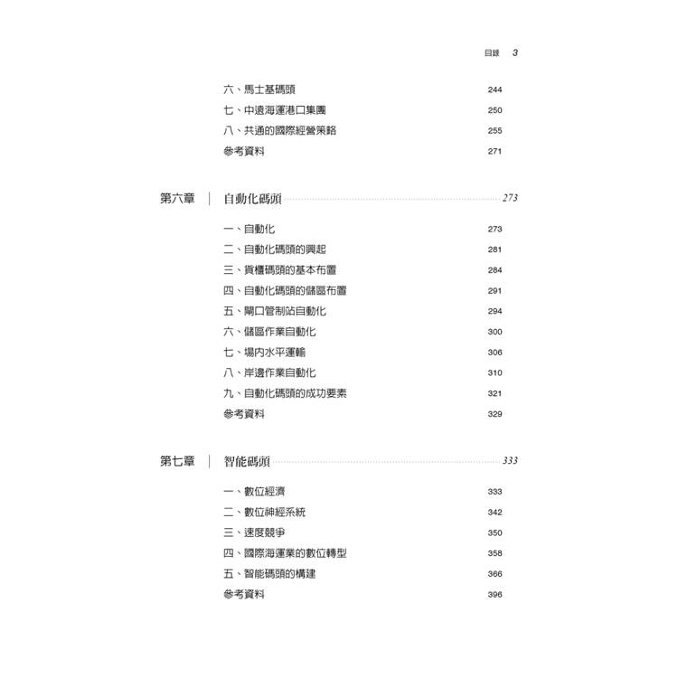 港口經由觀念與策略的轉型,找到新的經營內涵與價值;碼頭經由自動化與智能化,成為國際供應鏈中最有效的一環;以可持續發展的永續思維,建設綠色碼頭,強化在新風險中的生存韌性,這些都是本書一些主要的專業論述。另外,本書也加入數位經濟、港灣經濟、數位轉型、知識管理、速度競爭、國際經營、風險韌性等一些淺薄的管理觀念,以充實專業論述的內容。若有疏漏不足之處,如蒙各界先進指導賜教,將不勝感激。