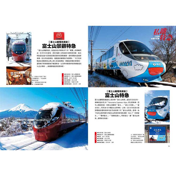 書中更完整收錄各私鐵公司引以為傲的收費特急列車,