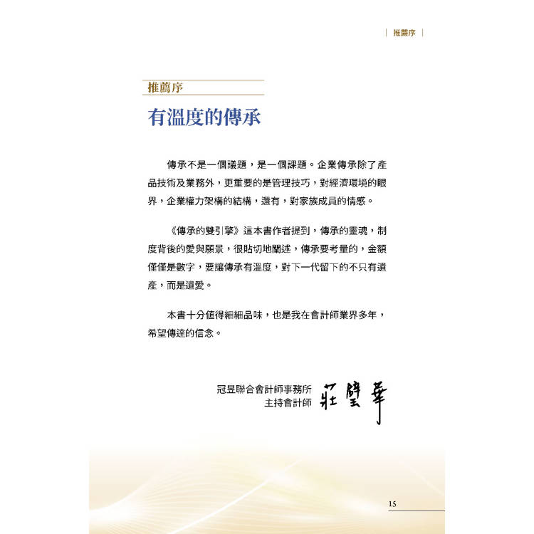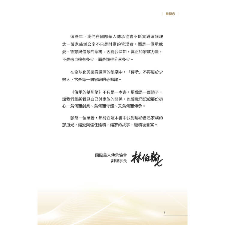 而《傳承的雙引擎》,是將這些內容整合成一個可落地的系統-它不是觀念,而是可執行的方案。