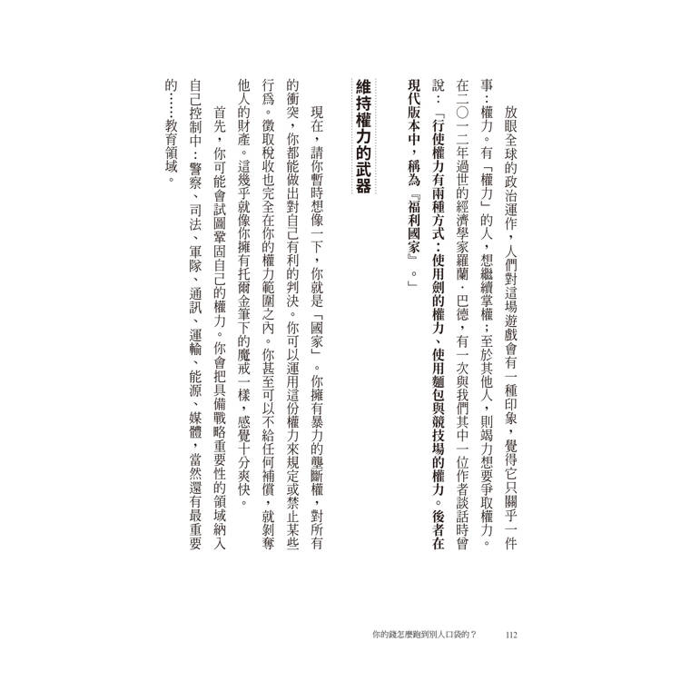 另外,書中對許多財政與公共政策有許多精闢的見解,包括政府偏好舉債而非加稅,是為了掩飾財政壓力,減弱人民的痛感、國家用通膨來剝削民眾、過度干預的苦果等,每一章都非常引人入勝。