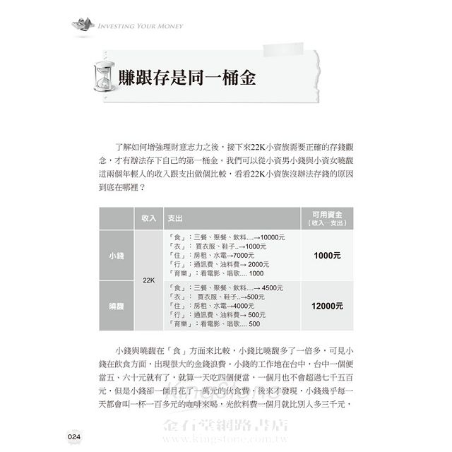 22K小資男與小資女,薪水同樣是22K,不同的是,小資女存了一百萬,小資男卻每到月底花光光。