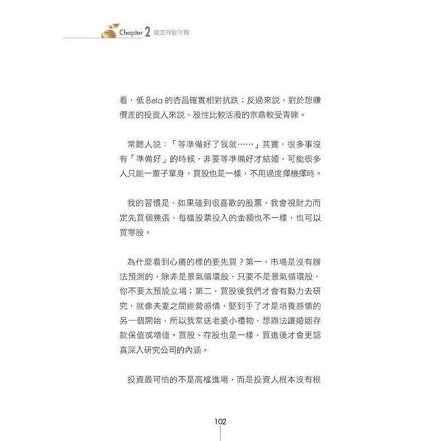 2023/04/20 大俠武林正如他的筆名,是一位從裡到外散發著「大俠風範」的人,面對讀者和粉絲時,總是充滿熱情且無私地分享自己的投資心得。 對編輯而言,能收到《全息人生》這樣一份滿滿誠意、毫無遮掩的稿子,是莫大的幸運和榮幸。以實用書來說,最忌諱的就是遮遮掩掩,但大俠武林不惜公開亮出自己的對帳單,只為了向讀者證明自己的投資方式經得起檢驗。 「專注本業,閒錢投資」堪稱《全息人生》中出現頻率最高的一句心法。因為在投資人能完全靠股息報酬Cover人生之前,「專業」就是自己以不變應萬變的底氣。大俠在書中有提到一段話:「股市的本意是希望大眾都能從中一起成長,只是後來人一多了,帶來了雜亂,也衍生出各種貪婪、眾多渴望一夜致富的投機者」。換句話說,股市本來的機制,是為了讓需要資金的公司和一般民眾共創雙贏局面而設計,而貪婪的投機者,則把股市變成了賭場。 然而,像德國股神科斯托蘭尼(Andre Kostolany)那樣靠投機致富的人,其實如沙漠中的砂金粒般稀少,沒有絕對的天分、機運和豐沛資金,是不可能辦到到。但稀有的成功案例,喚來前仆後繼的跟風者,很多普通人以為只要夠大膽就能一夕致富,結果往往淪為底層韭菜。 對韭菜們的不捨,成為大俠武林透過各種社交平台,不厭其煩地與網友溝通的動力。他認為投資是一種可以靠「資金控管」來得到穩定報酬的方式,而且適用於所有人,不論你是學生、上班族、退休人士,小資或大資,只要翻開《全息人生》書中「第87頁」照著做,任何人都能打造一台屬於自己的股市印鈔機。 大俠武林在前作中,僅用一檔兆豐金(2886)作為敘事主軸。然而,事實上他所投資的標的不僅限於一檔金融股,而是廣泛網羅他認為值得長期投資的個股和ETF。 因此,《全息人生》與前作最大的不同之處,在於大俠不僅於書中大方分享自己如何「篩選標的」,甚至更細膩地描述他的資金控管之道──亦即「定期定額」和「不定期不定額」的操作方式。只要讀者了解其中的道理,將能和大俠武林一樣,視看盤為無物,建立穩定報酬之餘,還能樂在生活、享受人生。