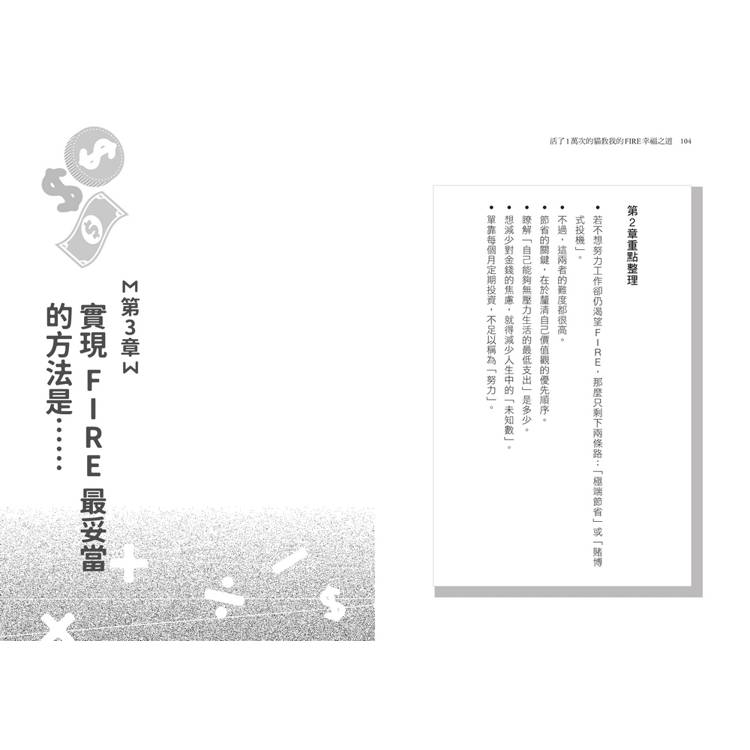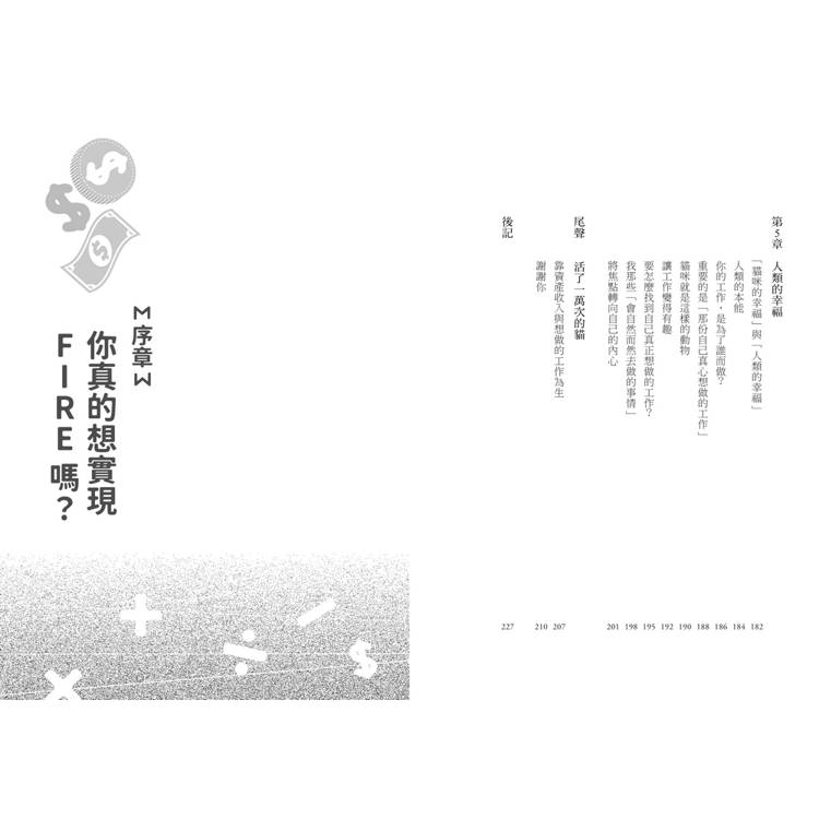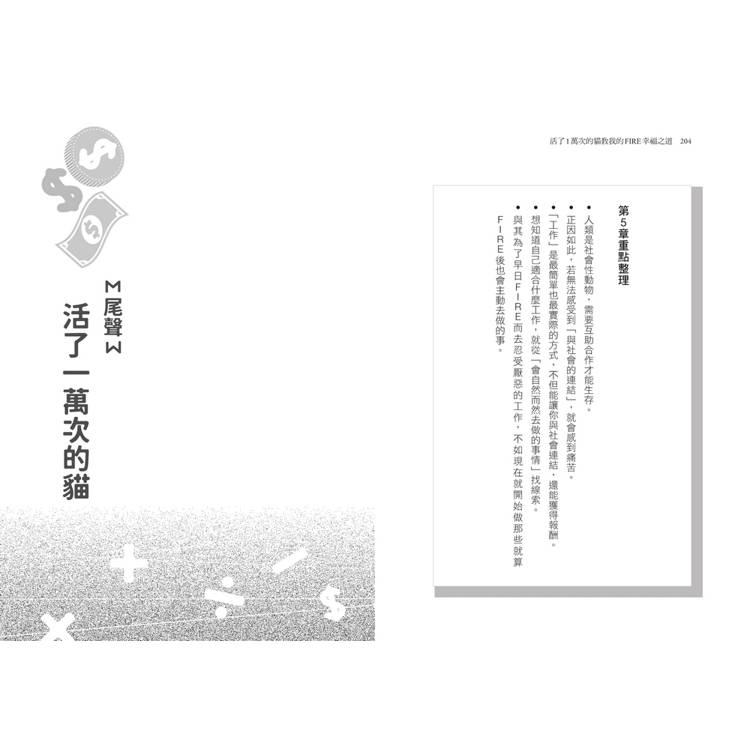 在追求FIRE的世界裡,很多人追著「自由」跑,卻忘了「幸福」才是目的地。這本書透過一隻貓的視角,讓你重新看見生活的柔軟與選擇的勇氣。理財之外,這其實是一本教人「好好活」的書。──鐵蛋/《給理財小白的翻身筆記》作者