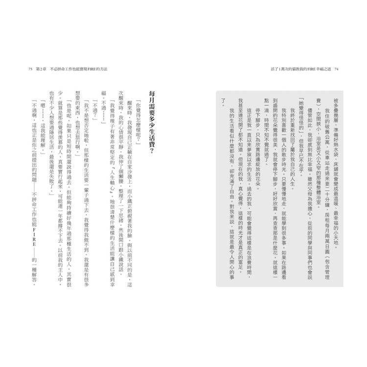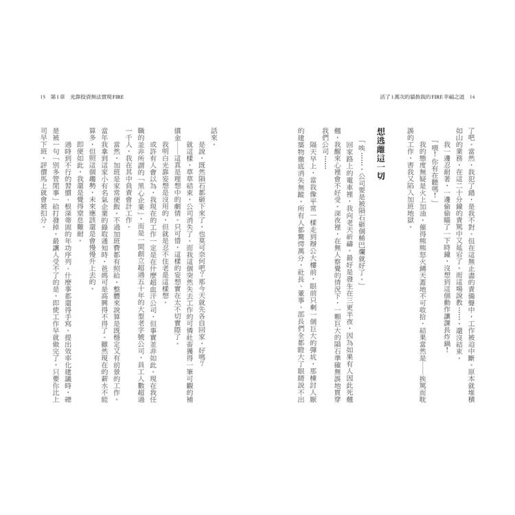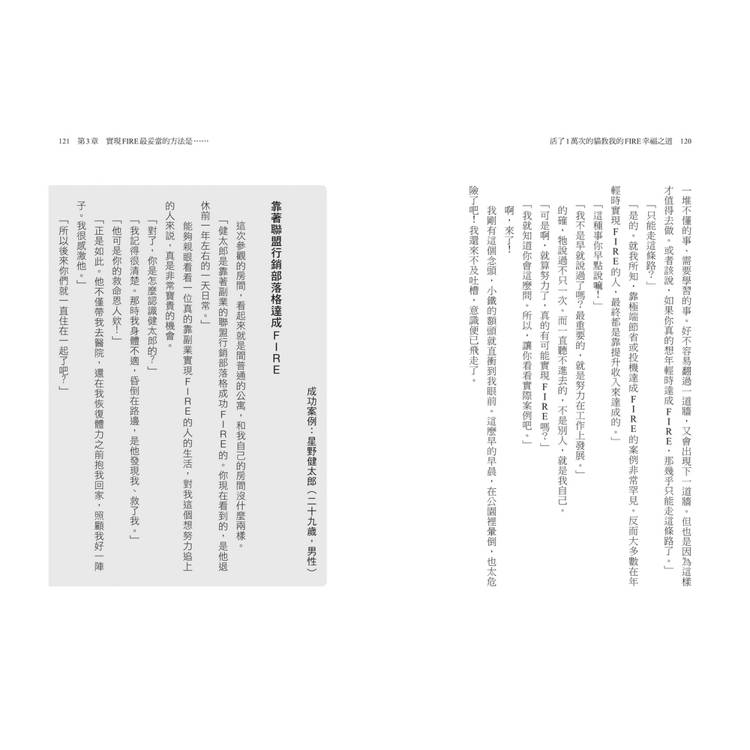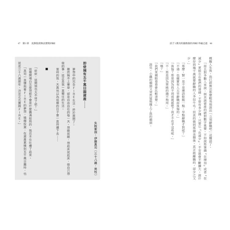 ‧FIRE真實案例分享:展示成功與失敗的FIRE例子,讓讀者了解理想與現實的差距。