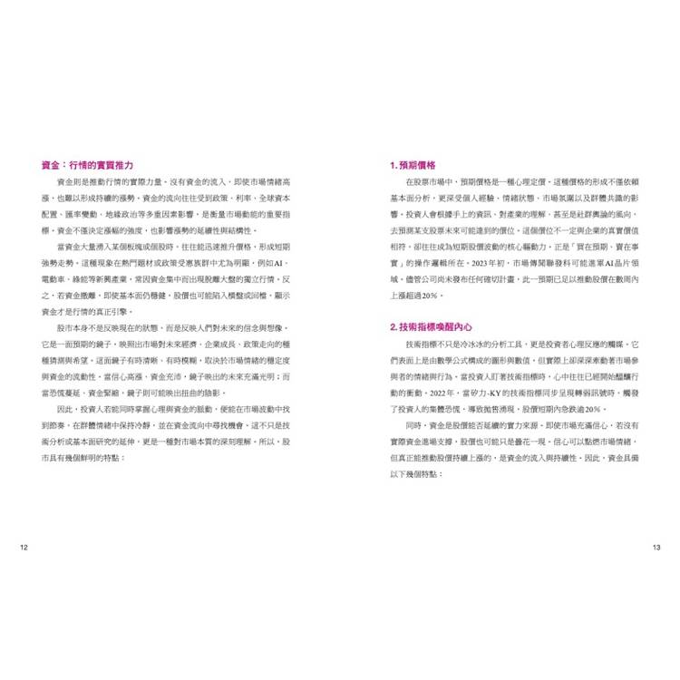 本書強調,善用ETF槓桿工具,是資金有限的投資人快速累積資產的關鍵途徑。然而,作者更再三提醒,槓桿運用必須以鐵的紀律為前提,嚴格依據技術指標設定停利與停損點,將風險牢牢控制在可承受範圍內。這種「槓桿與風控一體兩面」的設計,讓投資人能以有限資金,安全地參與完整的市場多空循環,真正實現報酬與安全的平衡。