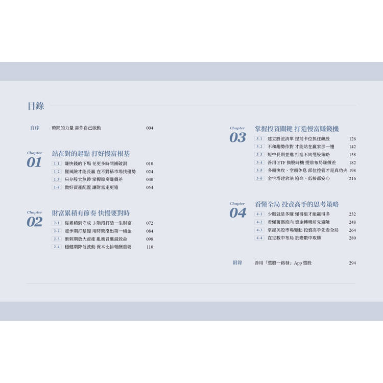 他相信投資不是比速度,而是比方法;不是追行情,而是建立能被重複運用於投資的系統。健康、自在、富裕為人生三軸,他希望帶讀者在混亂的市場中找回掌控感,打造能伴隨一生的穩健財務底氣。