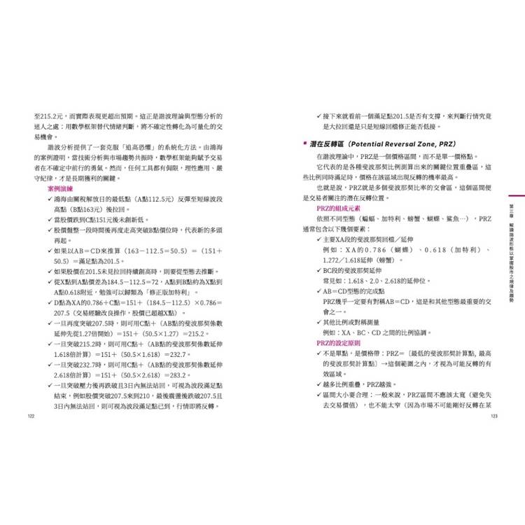 本書最大的亮點之一,是將「抽象的技術分析」轉化為具體的數學語言。黃金切割的38.2%、61.8%、1.618,不只是冷冰冰的數字,而是市場集體心理的映射。當投資人能以比例衡量市場波動時,就能脫離「猜」的階段,進入「算」的階段。