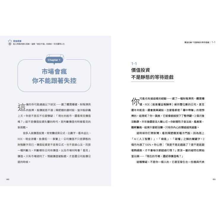 如果你也曾經選對公司,卻等不到好時機;如果你也想抱長線,卻總被短期波動打得沒信心,那我希望這本書,能成為你走出撞牆期的指引,讓你重拾對「價值」的信任,也升級對「市場」的理解。