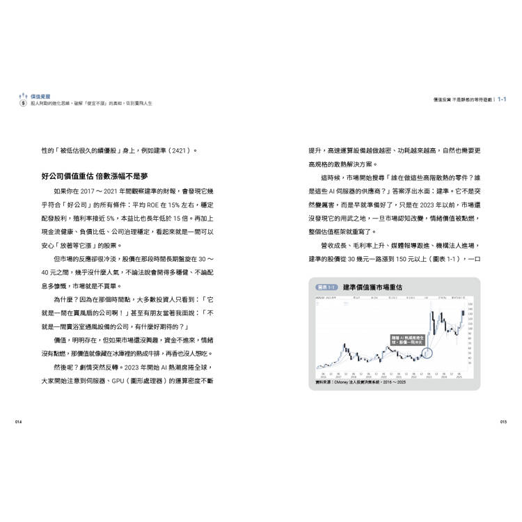 說真的,我一開始也不懂什麼「催化劑」、「情緒價值」這些名詞,這些概念,是我在一次次錯過、判斷錯、賣錯的過程中,一點一滴整理出來的。5年前那本書,是我對「價值投資」的傳統理解;而這一本,是我走過起落之後,更貼近現實的修正與進化。
