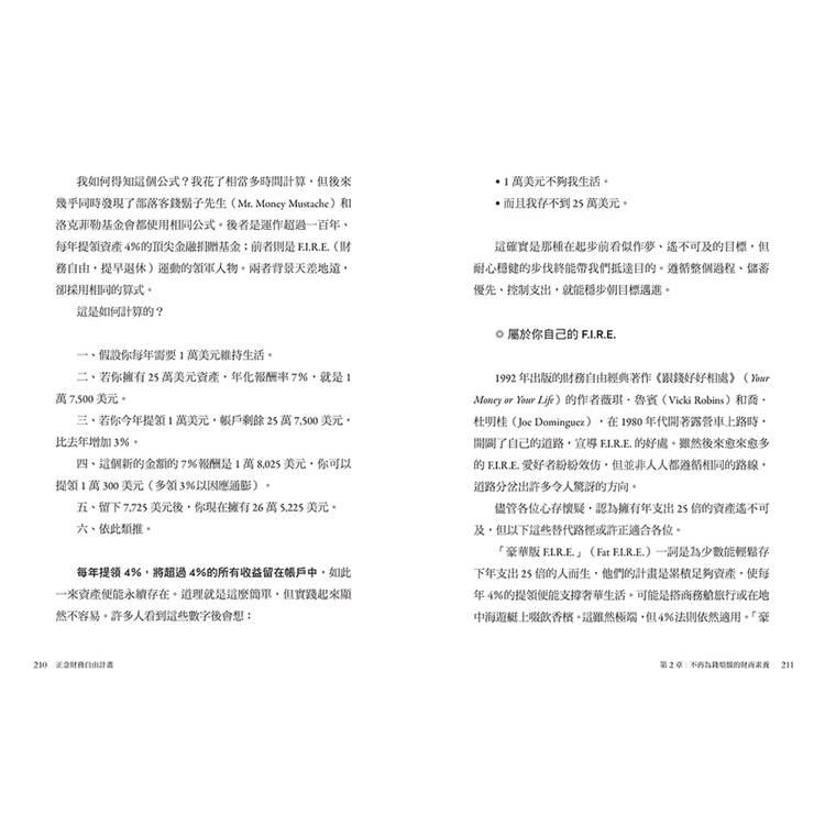 「每個人為了獲得財務安心所需付出的代價經常被忽略。沒錯,代價並不低,但也不是高得離譜。只有透過自我反思,各位才能找到屬於自己的最佳平衡點。讓這本書成為各位的起點吧。」