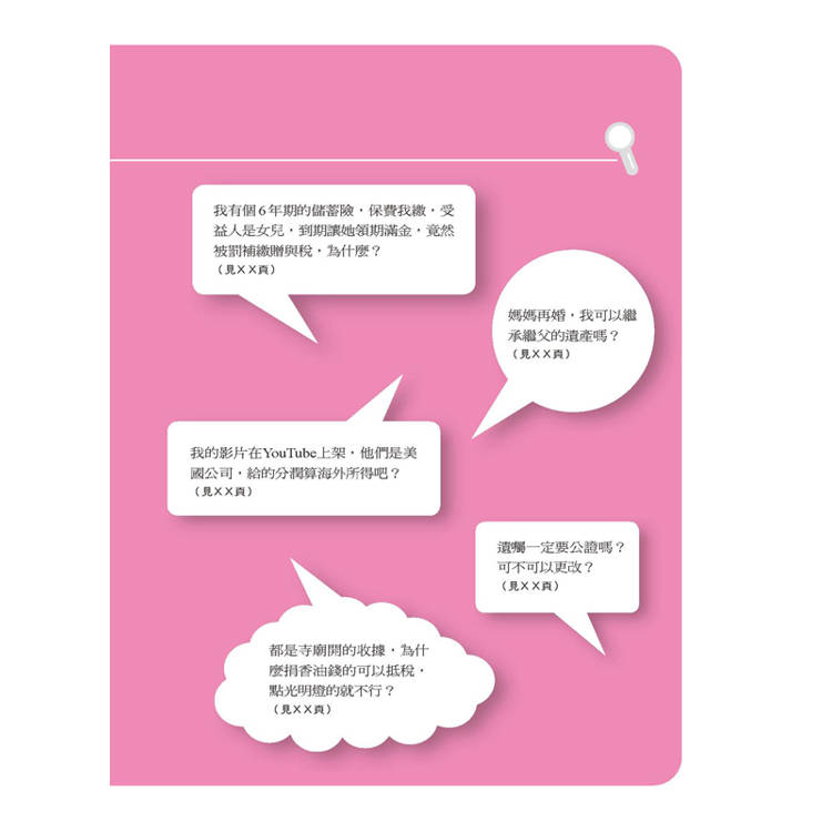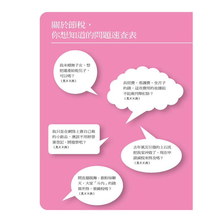 想辦法少繳稅,不只是很多有錢人理財規畫的首要重點,也是 小資族不容忽略的一塊。我常說,不管收入高或低,都要了解稅法 的基本規定,別讓自己合法節稅的權益睡著,最可惜的是白白把錢 繳出去,還不知道原因⋯⋯。