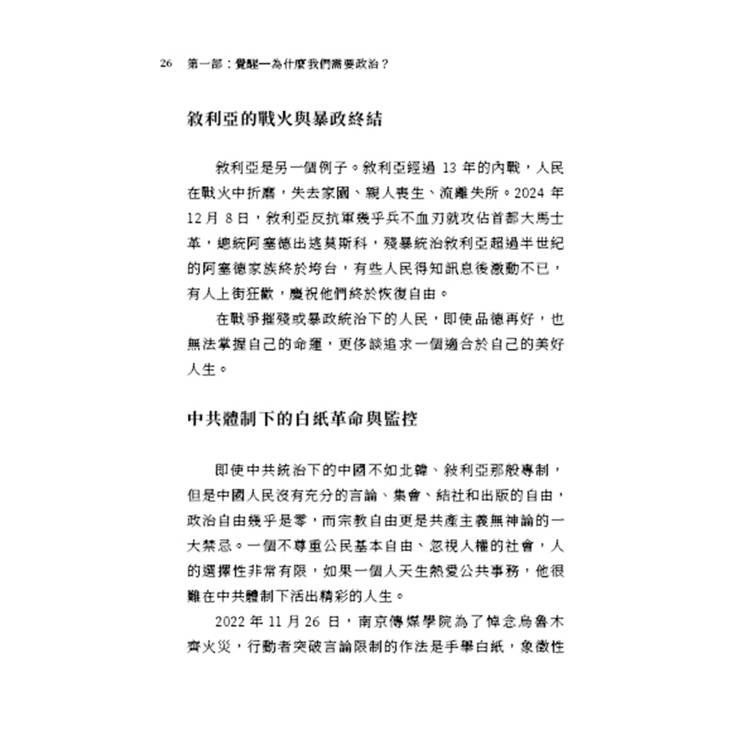 本書的價值,並不在於提供讀者現成答案,而在於引導讀者重新思考:制度如何形成、理念如何演變、人類如何在理想與現實之間尋找平衡。這種訓練,本質上是一種「心智素養的培養」,其重要性不亞於身體健康管理。