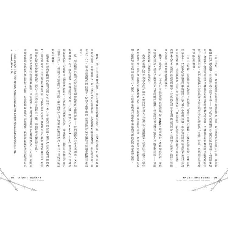 如今在更深入研究納粹分子的心態後,我相信自己已有能力更明確解釋這段歷史殷鑑。所以說,接下來的十二個章節不僅會細究納粹發展出那套思維模式的原因,亦會分別闡述一項我認為於當今仍值得我們警惕的教訓。本書最後則將討論這些不同警告的具體相關之處。